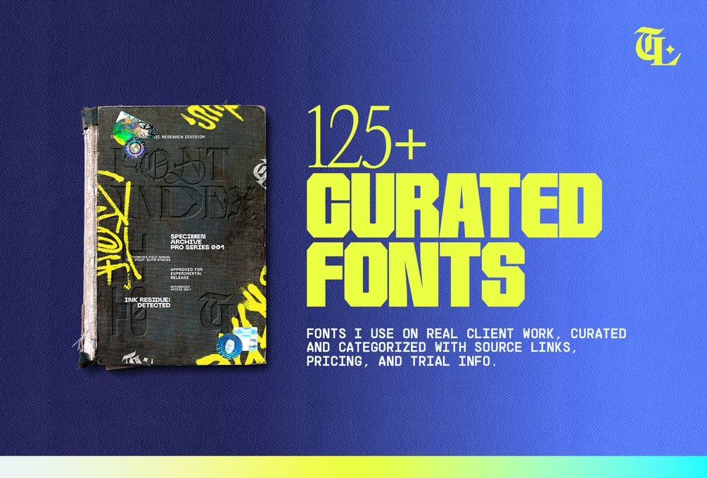 A complete typography operating system for designers who care about type. Inside: 125+ go-to fonts, 30 proven pairings, a pairing mini-course, 20+ real-world examples, curated type foundries, editable manuals, a custom Illustrator font-testing script, and a 125-font testing file — all delivered in a structured, lab-grade folder system.
